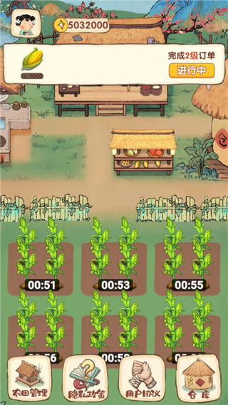 玩家需要不断扩大自己的土地,解锁更多农作物,创造更多的收益。游戏玩法也很简单,在这里玩家开局可以种植玉米,等玉米时间成熟后就可以进行收获,收获可以获得一定的报酬,你也可以对土地进行升级,每块土地可以增加20%收益。