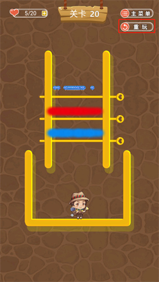 6、游戏关卡中如果玩家失误了,玩家还可以点击游戏右上角的重玩来进行重新游戏;