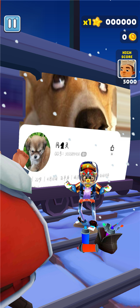 这个版本新增了很多凤灵定制元素,比如愤怒脸金币、圣诞雪地地图、多种皮肤和滑板选择,还有一些新的免费道具。游戏界面也充满了凤灵的风格,狗头背景特别有趣。