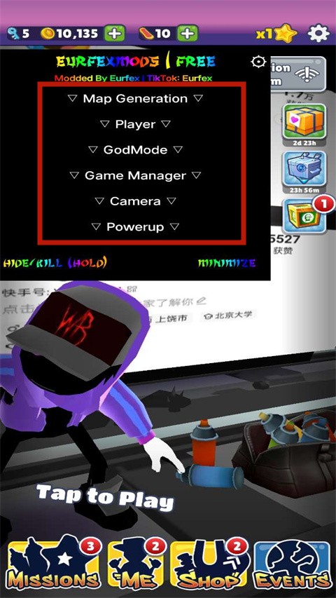 要说什么游戏最适合大家在日常空闲时间娱乐消遣,当属经典游戏地铁跑酷,几分钟一局,不肝不氪,大家打开游戏,在地铁、公交、吃饭期间开几局,挑战自己的最高记录。这次给大家推荐的的地铁跑酷小雾神定制版本是地铁跑酷的魔改版,是主播小雾神的个人定制版,该版本对游戏内容进行了修改,如将金币收集改成了钥匙,人物角色、图片等都进行了调整,给玩家提供全新的游戏体验,并且游戏内还内置了菜单功能。