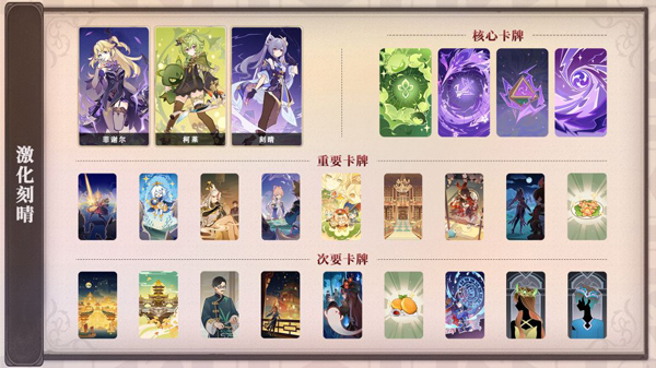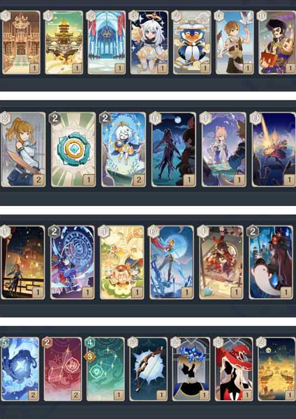 (1)需要携带大量充能卡,来释放出香菱和行秋的大招,等叠满buff后,靠普攻触发打出巨额的爆发