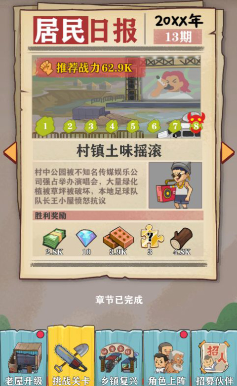 7、点击老屋升级升级,利用对战胜利的木头奖励来升级老屋,提高它的实力;
