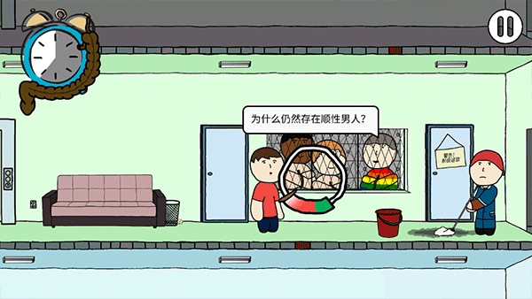 2、马桶不能正常使用,发挥你的聪明才智,使用各种道具吸引所有人的观察力,完成更多的挑战,可以顺利逃脱;