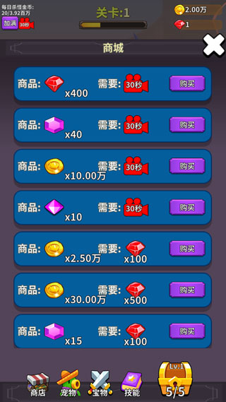 6、如果金币和钻石不够用的话,你还可以点击商店进行购买;