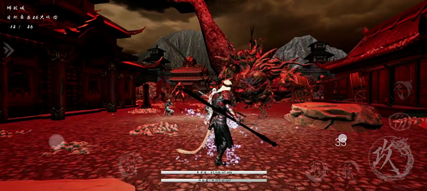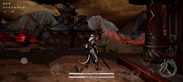 2、游戏采用横版移动操作,左侧轮盘控制移动,右边则为攻击、技能、跳跃等键位;