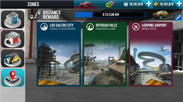 游戏为玩家提供了非常丰富的汽车赛道,玩家能在城市、机场、越野不同环境中自由切换,尽情享受在城市中肆无忌惮开车狂飙的快感。在游戏中,玩家可以自由的切换视角的,从车外到车内的视角一览无余,可以完成不同的任务还获取更多的金钱,用来对汽车进行升级改造和解锁更多的车辆。