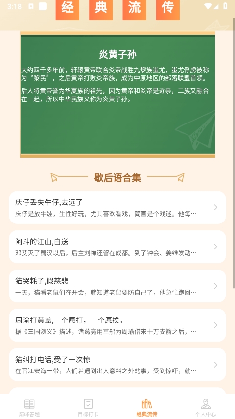 4、在经典流传界面还可以浏览到各种蕴含传统文化的歇后语,可有意思了。