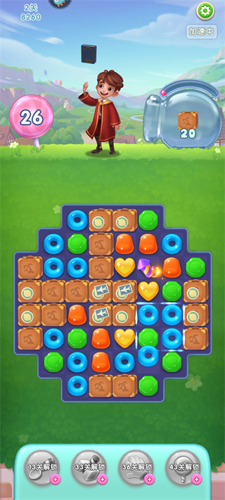 游戏有多个特色,比如结合建造元素、丰富的背景故事、随时随地可玩、打造个性化集市、简单的指尖操作以及独特的关卡设计。对于新手来说,获得三星并不难,但随着关卡难度增加,可能需要更多策略和道具的使用,比如合成药水或利用糖果勺等增强道具。