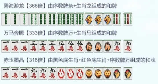 生肖图:对局中每摸到一张未摸到过的生肖牌,即可点亮生肖图中对应的生肖牌(只要摸到就行,打出去也算收集到了),且增加对应阶段的倍数,点击头像旁边的转圈圈可以点开生肖图,查看自己已经收集到的生肖情况