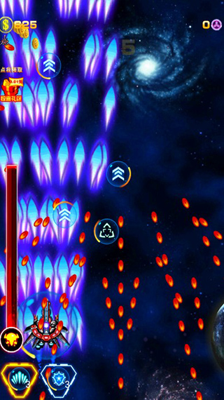 游戏里还有美女帮派一起打飞机,画面炫酷到不行,音乐也很燃!武器升级系统也很有趣,特别是达到上限后还能触发暴走模式,得分翻倍超爽。虽然复活要花钻石,但每局能复活三次,这点设计挺人性化的。