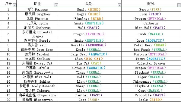 秘密类动物目前因为只能用英文合成,所以合成表就写的英文的方便大家合成。