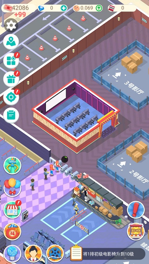 游戏里的界面设计得很卡通,看起来特别舒服。作为经理,我可以升级各种设备,比如空调、座椅什么的,这些都能让观众的观影体验更好,也能间接提高票价。游戏里还有任务系统,完成现金任务或钻石任务就能获得奖励,用来扩建影院或者招募员工。说实话,看着自己的小影院慢慢变成连锁影院,那种成就感挺强的。