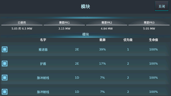 - 附件必备:箔条发射器、护盾电池、护盾增强器,可酌情添加散热片发射器
