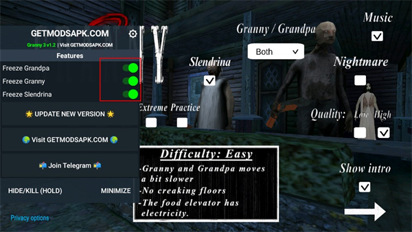 此版本已由网络大神破解完成,游戏内置修改器,玩家只需要在菜单中打开便可无敌,直接开挂,游戏中爷爷、奶奶、孙女都不会打你,没有天数的限制,同时游戏中也不含任何广告,给玩家带来非常好的体验感!