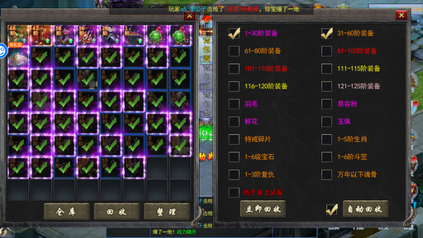 4、掉落的装备都可以回收,可以获得大量元宝,没事的时候可以多去野外挂机刷装备。