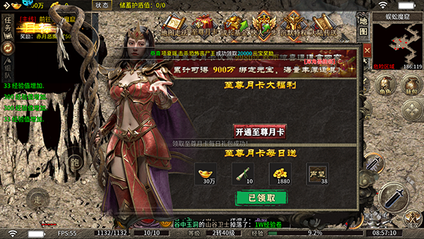 4、同时游戏绑定账号就送赠送了至尊月卡,每日礼包不要忘记领取了哦;