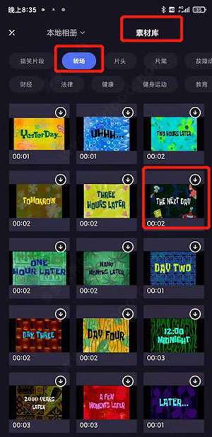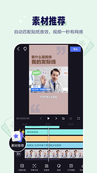 【丰富素材】种类齐全的花字和贴纸、全网通用的视频素材,各类转场及音效...别忘了添加包装让你的视频更有趣!