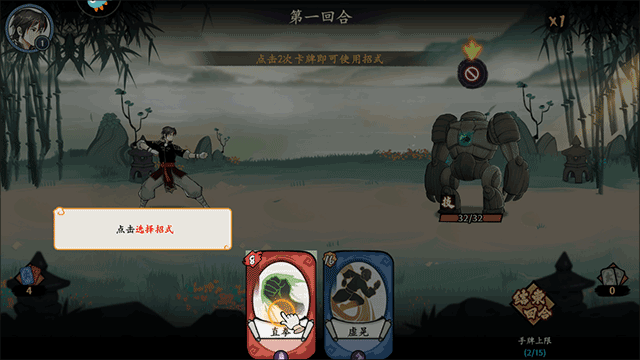 2、在这里点击高亮处的卡牌进行攻击敌人的操作;