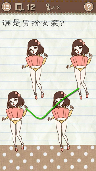 第12关、将屏幕倒过来,然后四个模特的裙子也会掉下来,内裤也会露出来,接下来你懂的,左下角的那个就是目标……