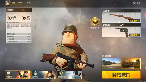 3、选择好游戏武器以及场景地图点击战斗。