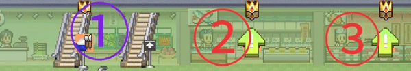 ① 这游戏刚开局我没有按照提示来走我是先把二楼腾空然后建造第一个专柜, 这个专柜从左到右分别是花店、面包店、零食店