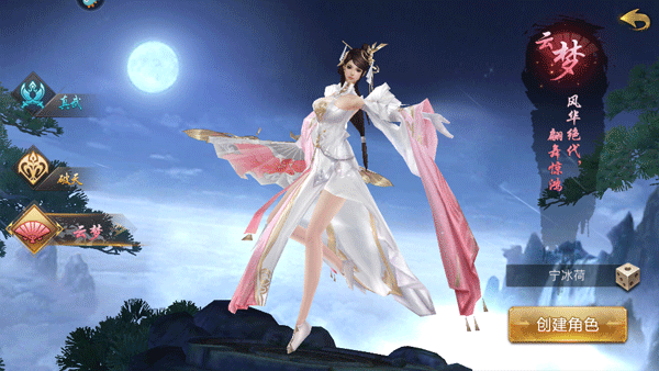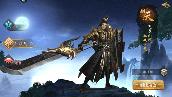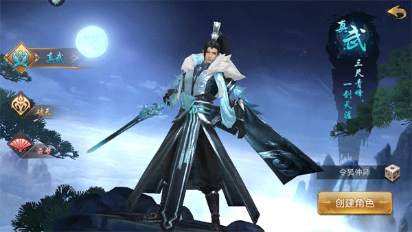 1、打开游戏,一共有三种人物角色可以选择:真武、破天、云梦,以真武角色为例,点击创建角色按钮。