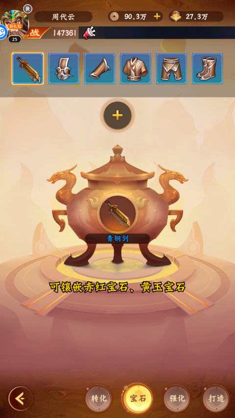 3、装备镶嵌最多可以两颗,赤红宝石、黄玉宝石。