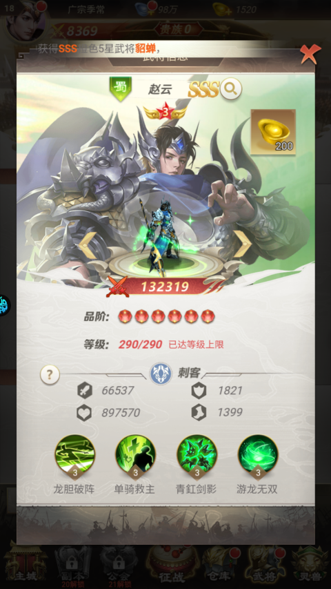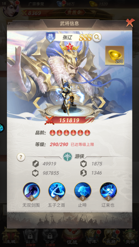 在称王魏蜀吴游戏前期,一定要优先培养1个武将,不需要太多,否则培养资源不够用。建议先弄个能升满星的武将,因为高星2S武将能锤爆低星的3S武将!如果想要3S武将,建议高级招募最好等到100后再抽,此时出3S武将概率更大。