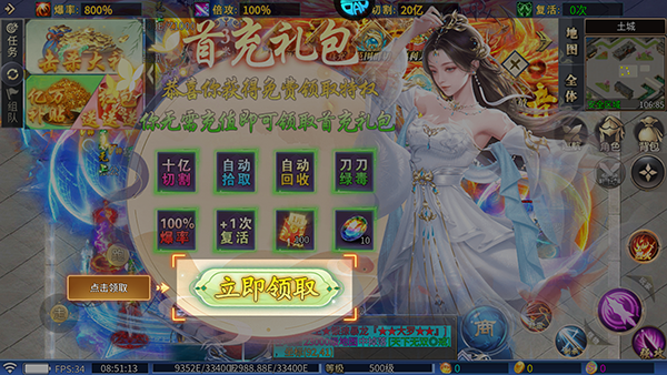 1、上线就可以免费领取首充礼包,不需要一分钱也可以享受海量福利;