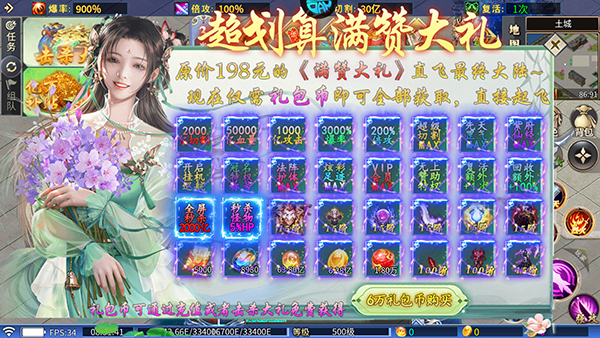 3、超划算大礼包只需要通过打怪掉落的礼包币即可轻松购买;