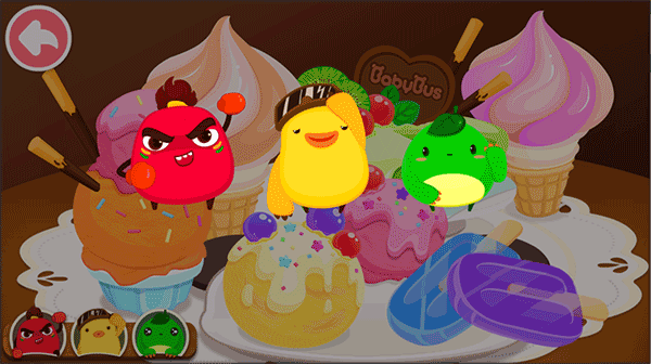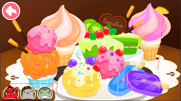 2、六大主题场景:缤纷的水果、七彩的气球、娇艳的花朵、美味的蛋糕、琳琅满目的书屋、豪华的小汽车。