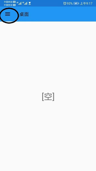 4、在模拟器中等待加载完成,会出现一个空白的界面,你需要点击桌面左上角的三条杠,