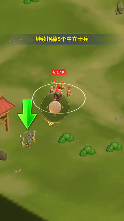 1、玩家首次进入游戏根据引导提示拖动屏幕进行移动,靠近中立单位完成招募!