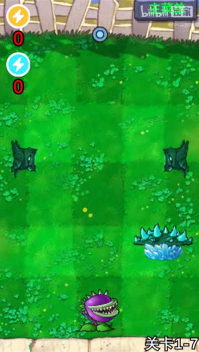 [1-7]这一关的难度在于疯狂移动的地刺,以及不断喷火的火炬树,这个时候可以使用小道具,蓝色的小闪电可以获得超能力赛水菇,可以无限次数的使用,所以我们可以点击蓝色小闪电,召唤出赛水菇,移动到火炬树上面后,再移动到地刺上,将三个障碍物全部冻住后,只需要一刀就能将三颗星星吃满,并且成功让大嘴花吃到僵尸