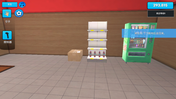游戏中你可以进货、布置货架、雇员、收银,甚至给超市取名字。目标是通过合理经营,吸引顾客,提升收入,解锁更多商品和装饰。新手教程也很简单,一步步教你开店。