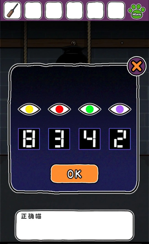 22、前往密室,用小刀割开棕猫身上的绳子,返回密室第一个房间,点击笼子,输入8342,打开获得植物。
