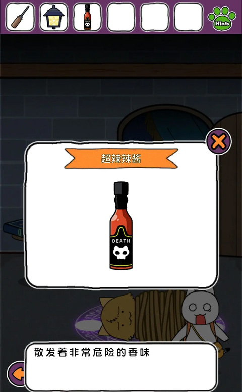 17、对餐桌里的肉使用魔鬼辣椒酱,获得超辣的肉,把肉给乌鸦,乌鸦飞走。