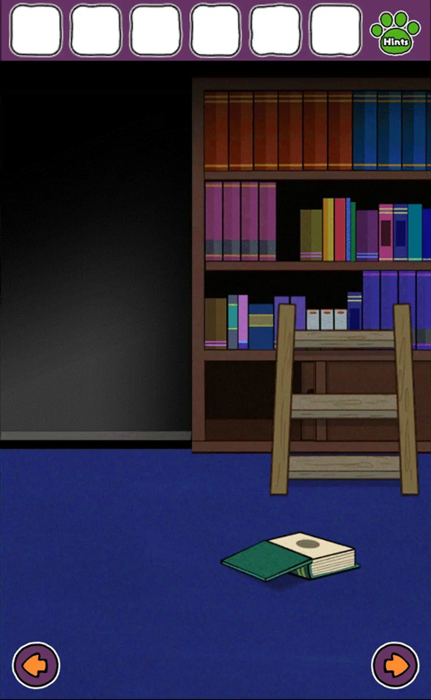 10、向右到达有很多书柜的房间,点击左侧黑色部分进入密室,点击密室墙壁上的凸起获得螺丝刀。