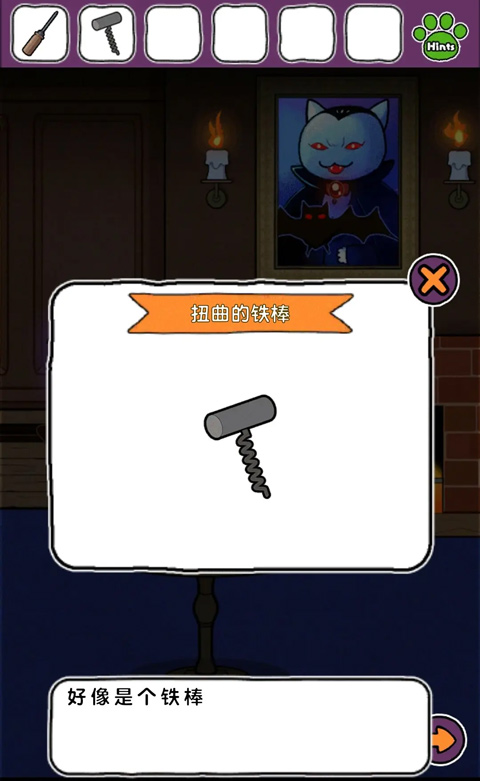 16、返回吸血鬼画像房间,对壁炉里的或使用火钳,获得起子。