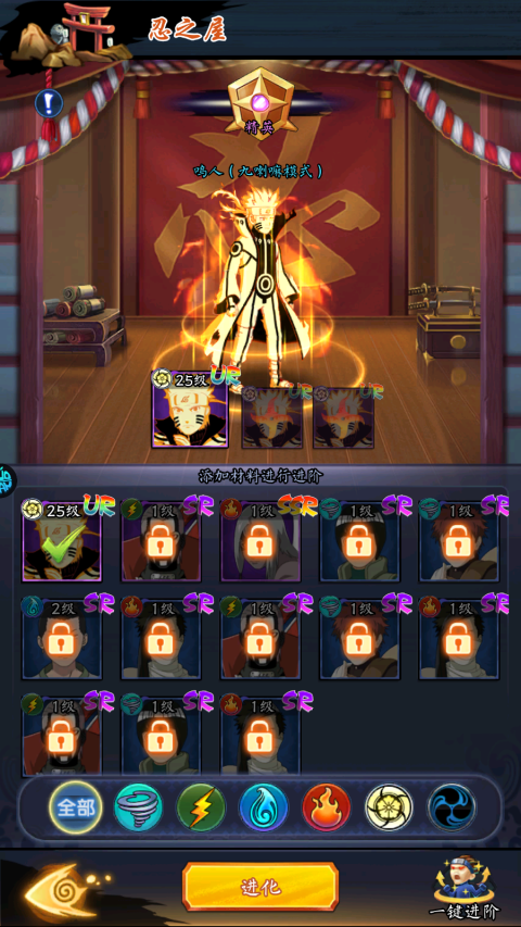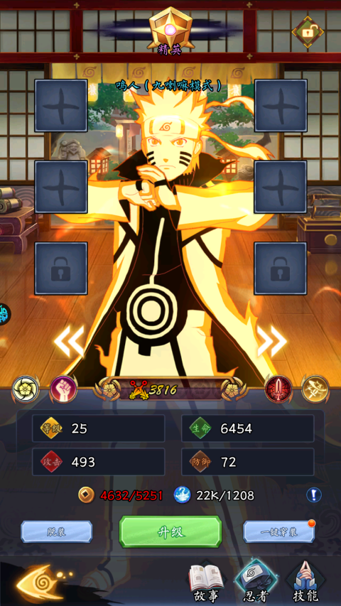 1、忍者升级,升级后除了提升战力,还能学会忍者专属技能。
