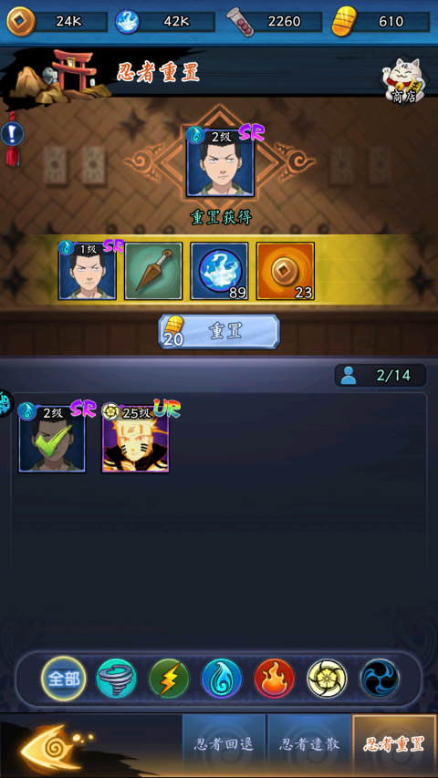 5、遣散重置,养成的忍者可以0损耗重置,遣散可以获得强化资源。