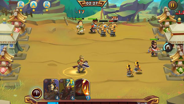 战斗场景默认分为3路。武将只会在当前那路行动,不会跨路。