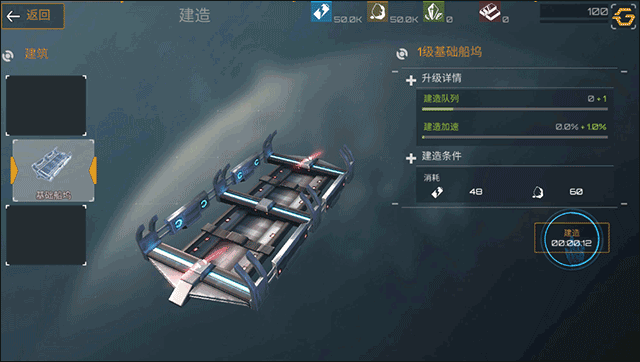 6、在内舱中找到并点击蓝色圆圈的建造选项;
