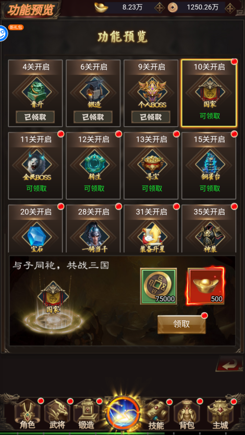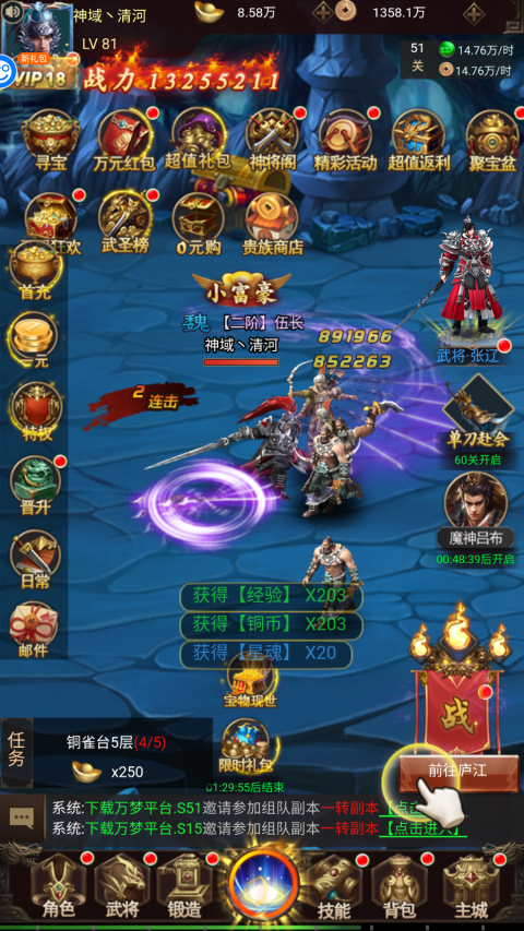 3、玩法海量,放置挂机也可以不无聊,深度养成的武将系统等你来发掘。