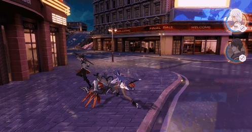 在地面可发动上挑攻击,挑空敌人;在空中可发动一闪攻击可追击敌人并穿到敌人身后。使用一闪需要消耗100点动能(即1格),动能随时间或者在地面攻击命中敌人回复。