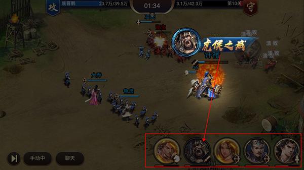 5、在战斗过程中,武将会积攒怒气,积满之后玩家就可以释放强力的武将技能。