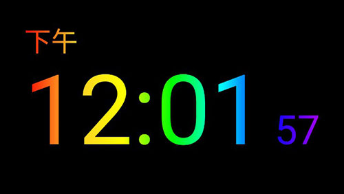 回到手机桌面上即可看到,整体时间颜色已更换为彩虹。