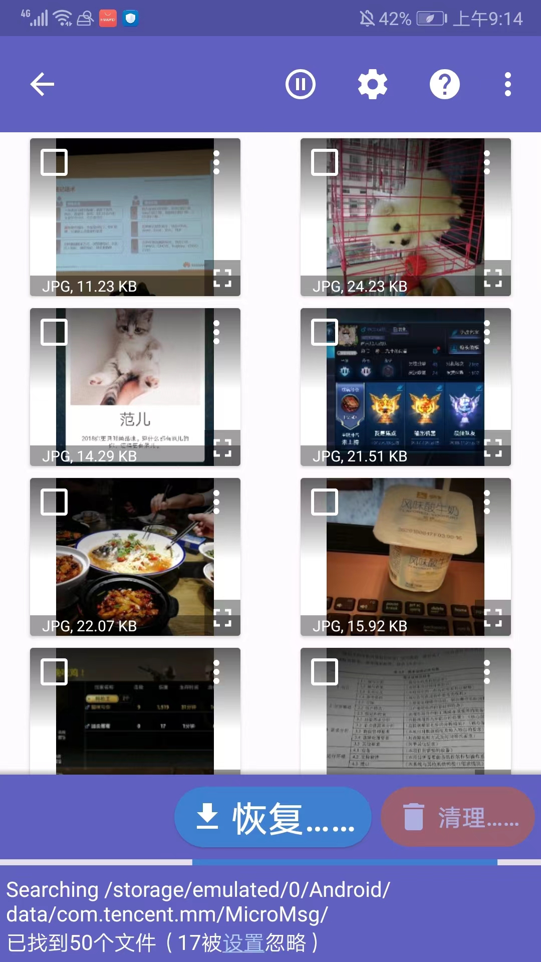 3、我们可以随时点击暂停,然后勾选需要恢复的照片,
