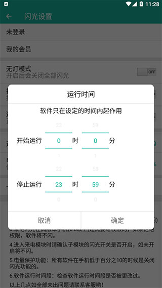 4、点击运行时间段,修改闪光时间,进行时间段的设置