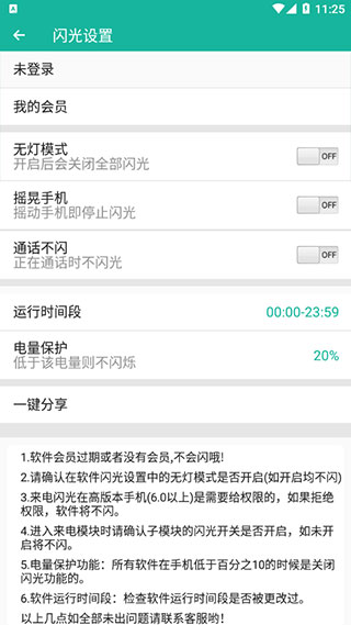 高级设置:个性化设定闪光频率、闪光次数、开启时间